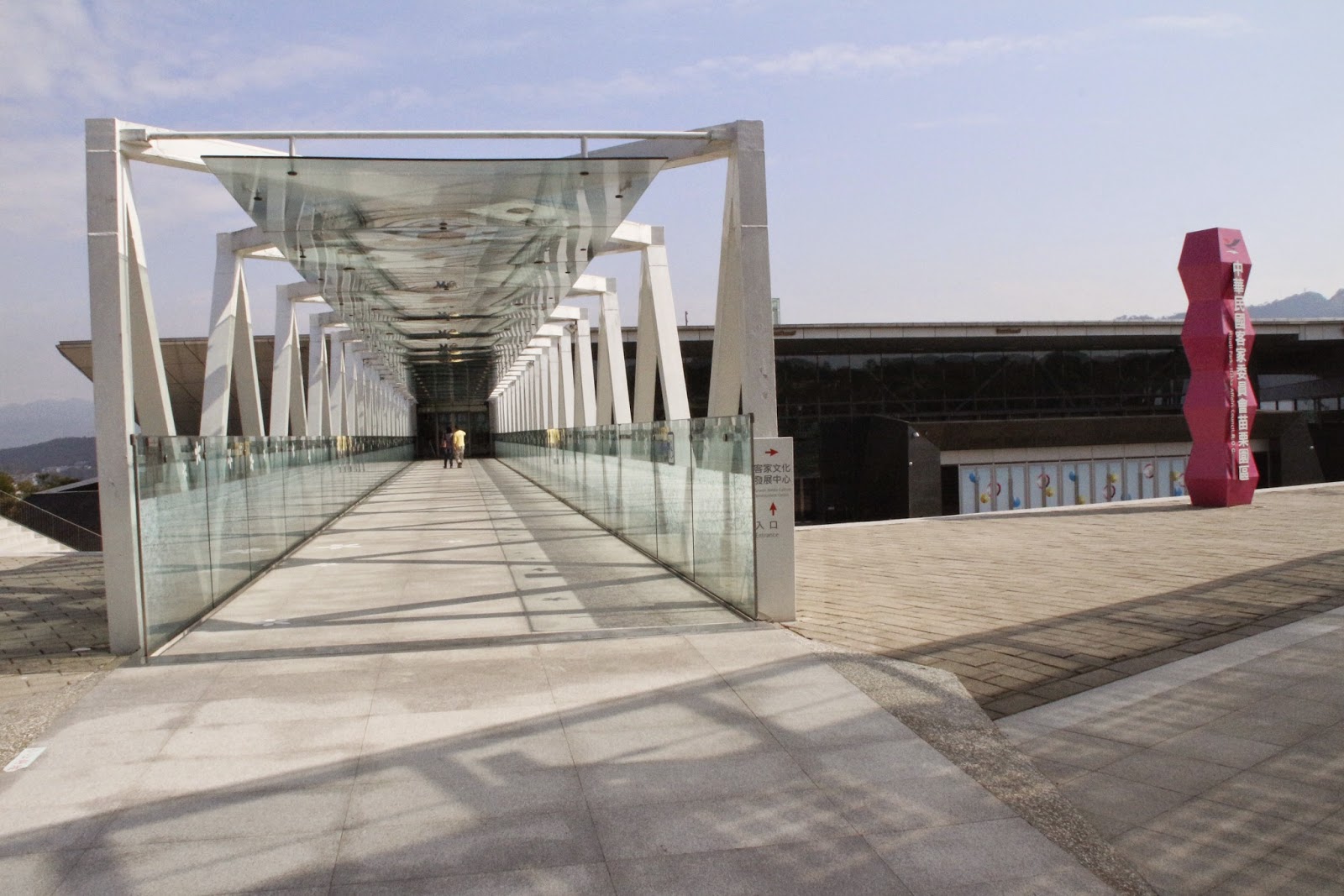 園區建築物設計概念有如「地景建築」,反應客家文化尊重自然的精神本色,保留基地原有植栽地貌,將客家精神融入當地優美自然的環境。彼此獨立又互相 融合的室內空間與交誼中庭,使您可以在流暢的動線及富有變化的自然光影下享受欣賞客家文化的樂趣。主體建築抽象的梯田造型、景觀設施或室內地面隨處可發現 的客家圖案,在這個嶄新而現代化的建築環境中,間接喚醒參訪者似曾相識的客家印象,並帶來新的驚喜與感受。